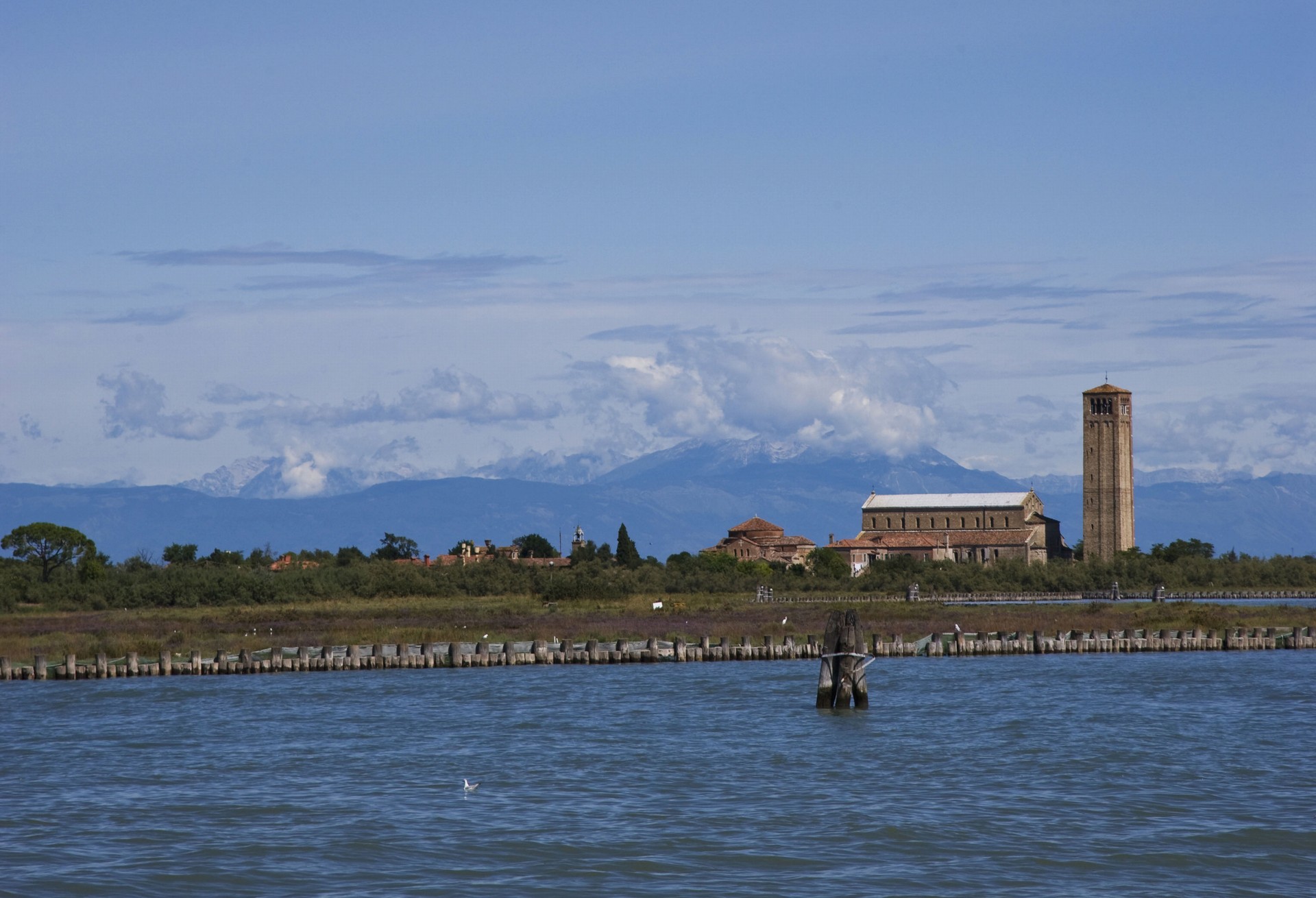 Il cuore dell’isola è costituito da un vasto complesso religioso raccolto davanti uno spiazzo erboso. L’antica Basilica di Santa Maria Assunta è una costruzione veneto-bizantina ristrutturata nelle forme attuali intorno all’anno 1000, al cui interno si trovano straordinari mosaici bizantini tra cui il grandioso “Giudizio Universale”. Il campanile romanico del XI secolo si eleva isolato sul retro, mentre un porticato collega la Basilica alla chiesa di Santa Fosca, edificio a croce greca.